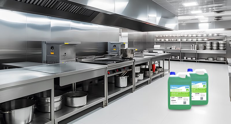 - Removes oil and food residues from floors and walls