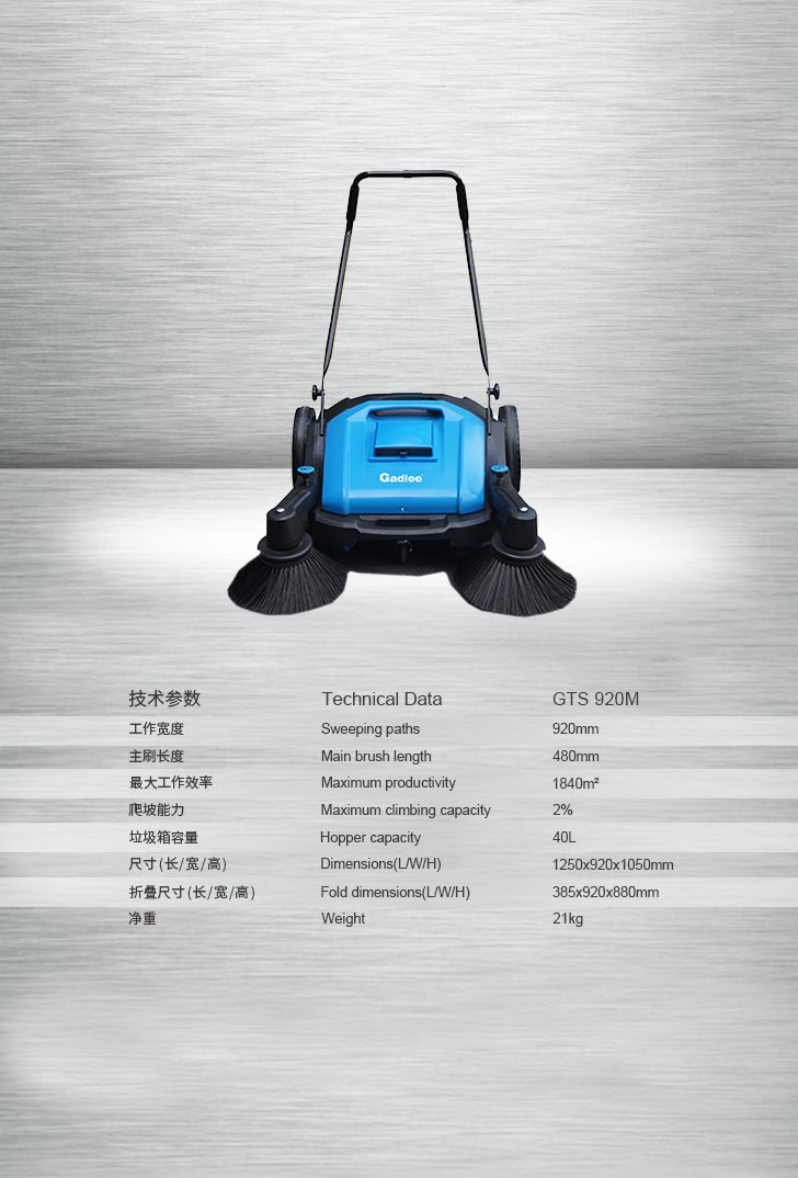GTS-920Mは、砂や石、ガラスや濡れた落ち葉も簡単に掃くことができる非常に効率的な機械式スイーパーです。使用者は押すだけで、ホコリ、落ち葉、ゴミを簡単に掃き寄せることができます。