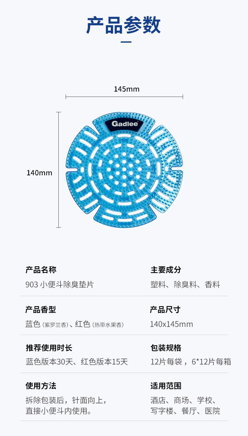 Anti-bacteria agent deodorizes and cleans urinal & drain.Powerful and long-lasting performance – up to 30 days. Eliminate need for special spra. Prevents calcium scale build-up. Maximizes drain flow. Special patented flower shape fits all urinal styles.