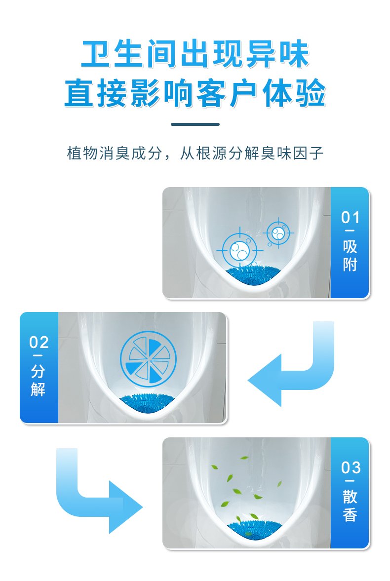 Anti-bacteria agent deodorizes and cleans urinal & drain.Powerful and long-lasting performance – up to 30 days. Eliminate need for special spra. Prevents calcium scale build-up. Maximizes drain flow. Special patented flower shape fits all urinal styles.