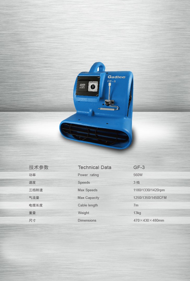 The Gadlee GF-3 Ventilation/Drying System is ideal for drying carpets, hard floors, upholstery or wherever fast dry times are required.