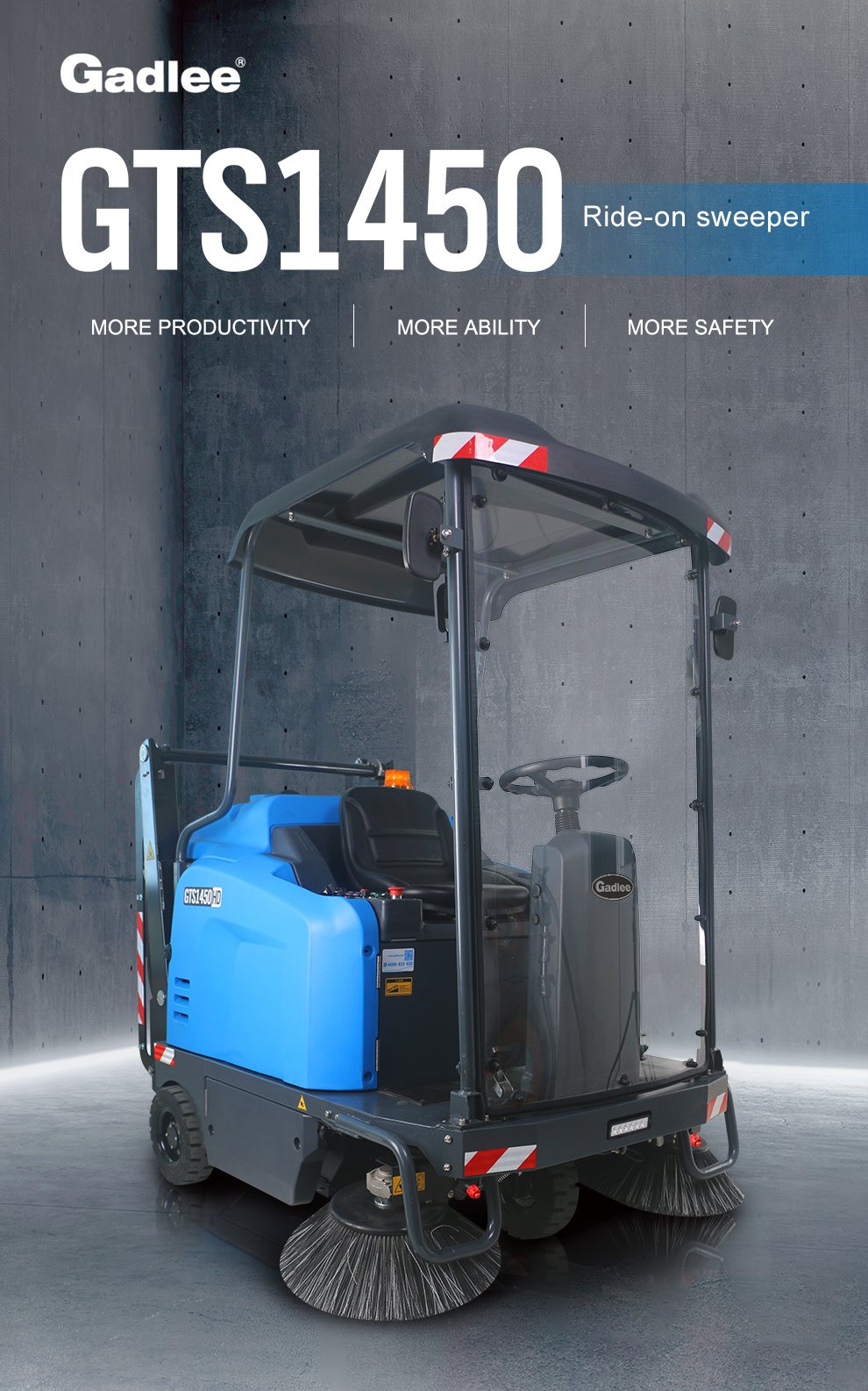 GTS1450 HD is a ride-on sweeper with a high dump designed for maximum performance. With a cleaning capacity of up to 10,875 m² per hour, the machine is equipped with a heavy-duty PTFE filter system. It is ideal for both outdoor and indoor sweeping applications such as parking lots, pathways, railway stations, loading bays, warehouses, and industrial settings.